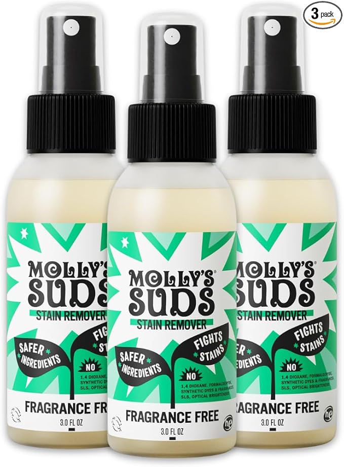 Molly's Suds Stain Remover Spray | Gentle Yet Powerful, Great for Baby & Pet Stains | Clean, Simple Ingredients (Fragrance Free) (3 Fl Oz (Pack of 3))