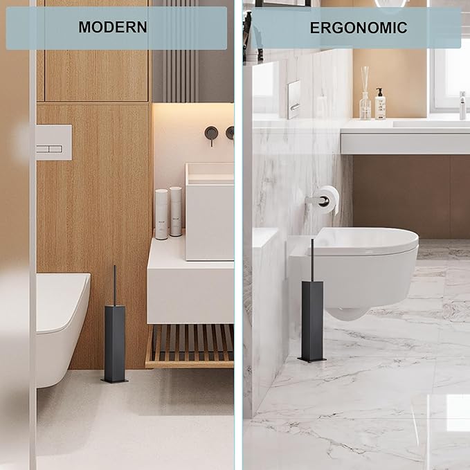 - Premium 304 Stainless Steel Toilet Brush Set:Crafted from 1mm-thick 304 stainless steel, this toilet brush and holder set delivers exceptional corrosion resistance. The durable combination of toilet bowl brush and holder ensures long-lasting performance.