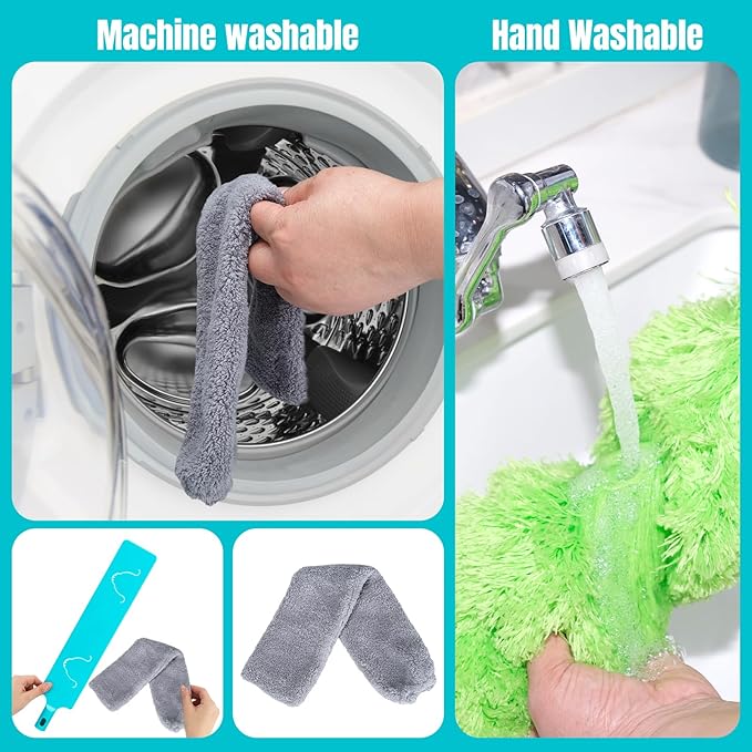 - 【Flexible & Detachable Dusters】: The ceiling fan duster is so flexible that it can be bent to any angle, cleaning all kinds of dead corner and hard-to-reach areas. The long cobweb duster with extension pole is built-in with flexible materials, making the ceiling fan cleaner easy to clean and reusable. The sheet-like design is easier to use than the spherical design, and can reach blind spots that cannot be reached by the spherical brush, achieving the deepest cleaning.