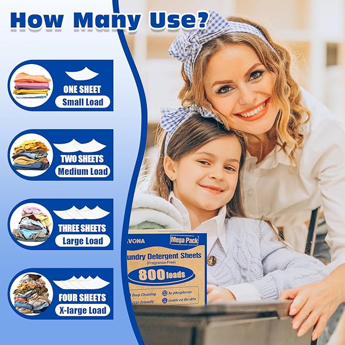 800 Loads Mega Pack Laundry Detergent Sheets, Eco-friendly Laundry Sheets, Powerful Cleaning, Suitable for Homes, Dorms, and Apartments- [Fragrance-Free]