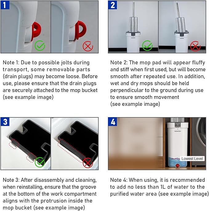 - 【Separate Dirty and Clean Water】HoMettler 3-tank flat mop and bucket system keeps clean and dirty water completely separate, ensuring every swipe uses fresh water—reducing cross-contamination and boosting clean results. 3L water tank cleans up to 1000+ sq ft per
