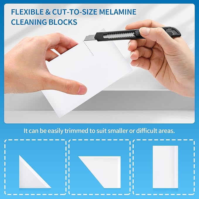 - VERSATILE CLEANING: Multi-purpose melamine foam sponges effectively clean marks, stains, and grime from walls, floors, sinks, furniture, and more