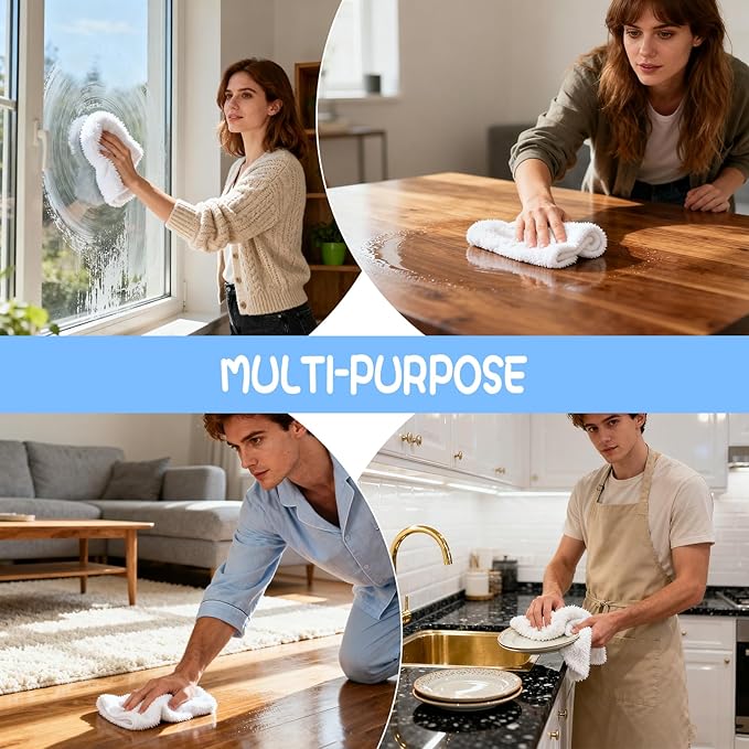 - Multipurpose Use Around the Home: Great for cleaning in kitchens, bathrooms, offices, and cars. Use them dry for dusting or damp for wiping away grease, grime, or water spots.