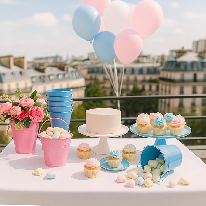 Sadnyy 12 Pack Metal Buckets with Handle, Galvanized Bucket 4.5 x 5 Inch Basket Bucket Party Supplies, Crafts for Christmas Halloween Candy Bars Vase Crafts(Pink Blue)