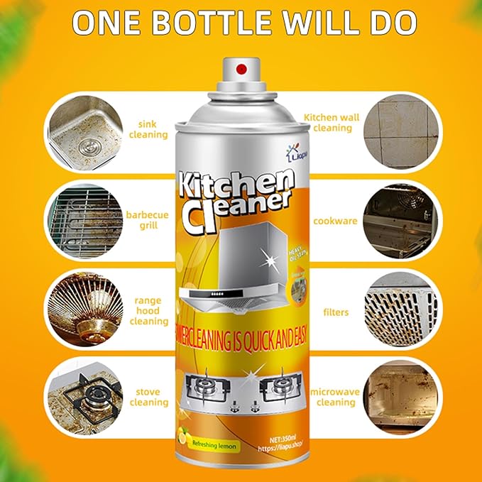 Liapu 3PCS All Purpose Cleaner, Heavy Duty Degreaser Cleaner Spray, Lemongrass Scent Oven Cleaner Clean Up Kitchen Oil Stains Cleaning Tools For Stove Top & Induction Cooktop and Grill