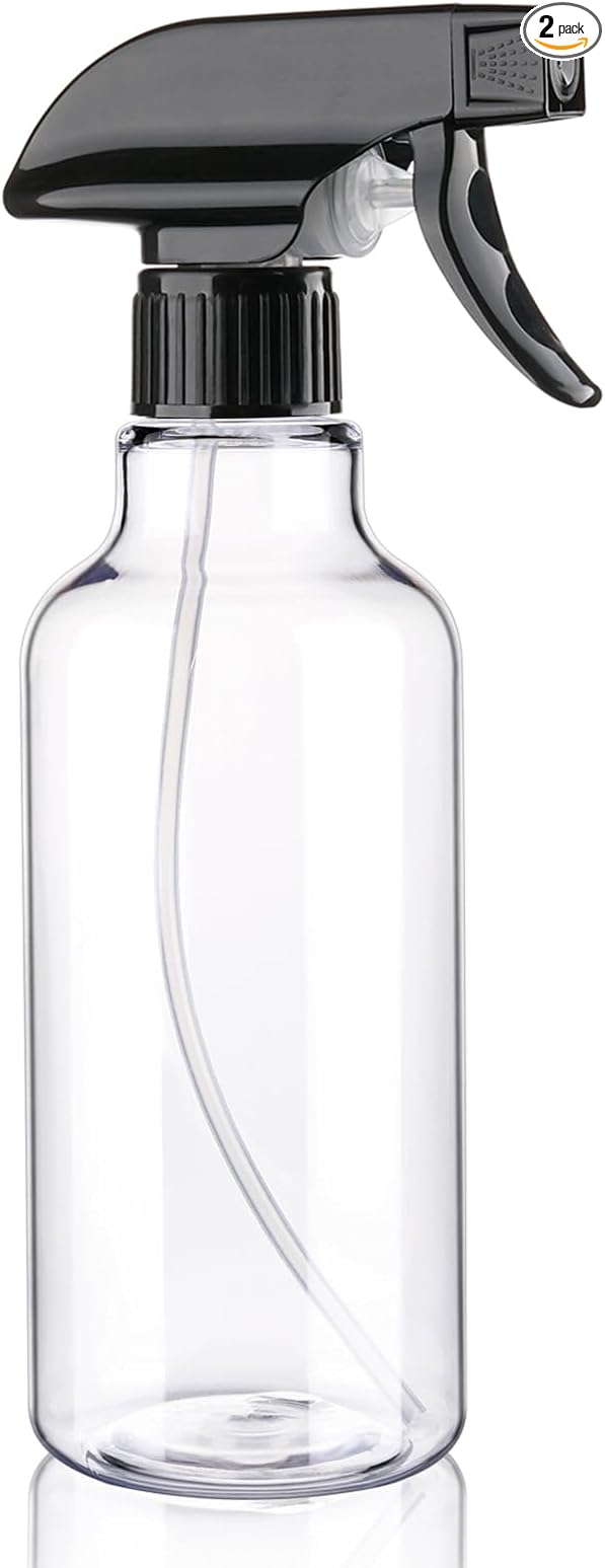 Spray Bottles Plastic Spray Bottle for Hair Mist/Stream Heavy Duty Empty Spray Bottles for Cleaning Solutions, Plants, Cooking (16.9oz-BlackClear)