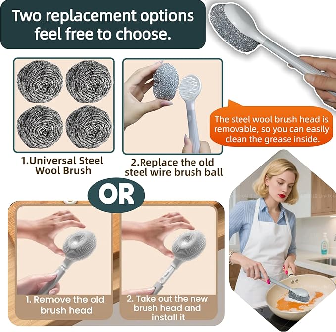- Replaceable & Budget-Friendly: Tired of tossing entire brushes? "Replace, Don’t Waste" Swap worn dish brush replacement heads and keep your handle for years.