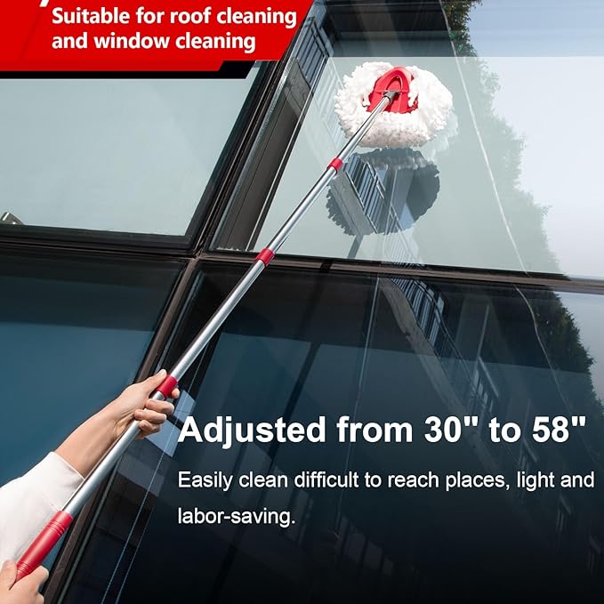 - š§ćNo Need to Bend Overć- Short, tall and super tall people all of them can use it by adjust the height. You can disassemble the mop handle replacement into 4 parts,It can be adjusted from 32 inches to 58 inches as you want.With the longest length, you can reach the ceiling and window.