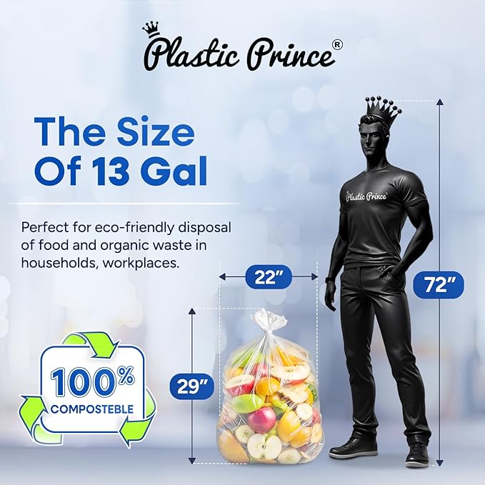 - Eco-Friendly Trash Solution: Made from compostable, plant-based materials, these 13-gallon trash bags offer a sustainable alternative to traditional plastic liners, helping reduce environmental impact one bag at a time.