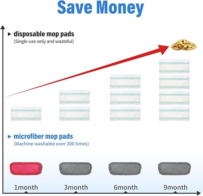 - Washable and Reusable-The back pad can be connected with the mop head by hook, which is convenient for disassembly.The mop pad can be washed over and over again, machine washable, hand washable, and then reused. Never use bleach.