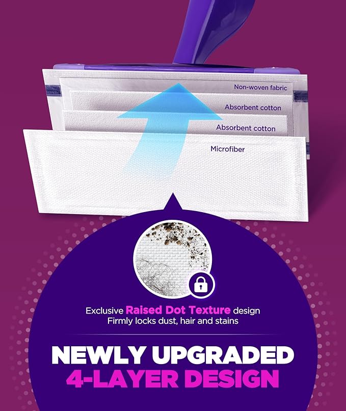 - 【INNOVATIVE RAISED-DOT TEXTURE】End your battle with stains! Unlike ordinary wet pads refill, Domudy unique RAISED-DOT design increases friction to easily lift small messes. The surface is made of millions of microfibers that generate static, capturing up to 99.5% of dust & hair. Every swipe leaves your floors fresh and spotless. No dust, no hair—every corner shines with cleanliness, creating the relaxing home you deserve.