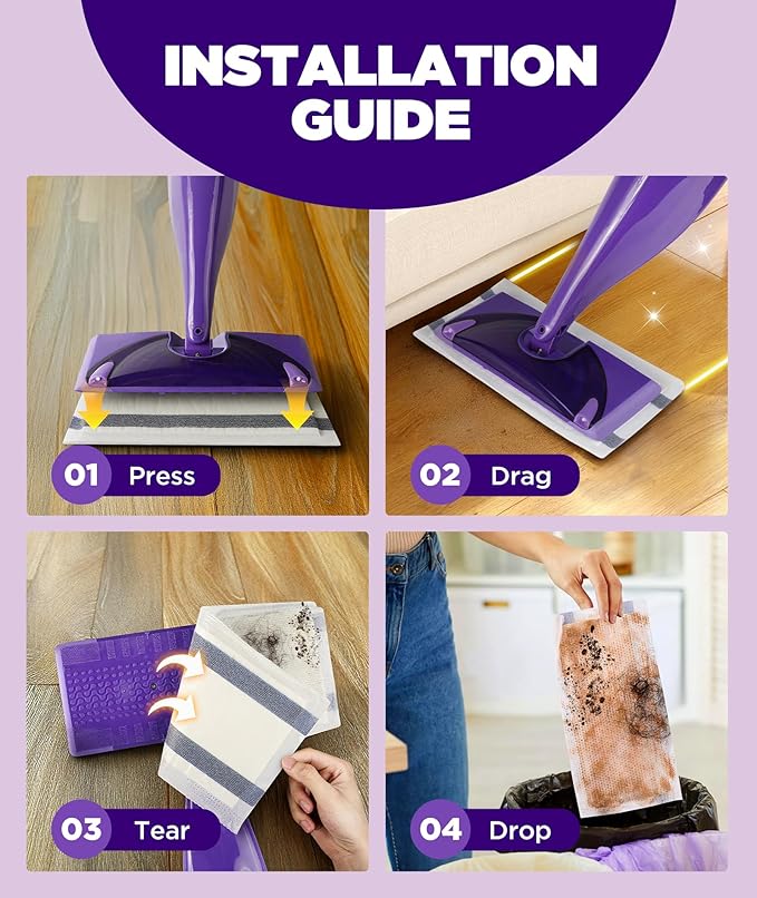 - 【Perfect Compatibility with WetJet】Domudy disposable mop pads fit Swiffer WetJet perfectly. Align the pad with the mop head and press down—the strong Velcro holds it securely in place without slipping. Once installed, you're ready to clean with ease.The disposable design allows you to just toss the pad after use for faster, easier, and more reliable cleaning every time.