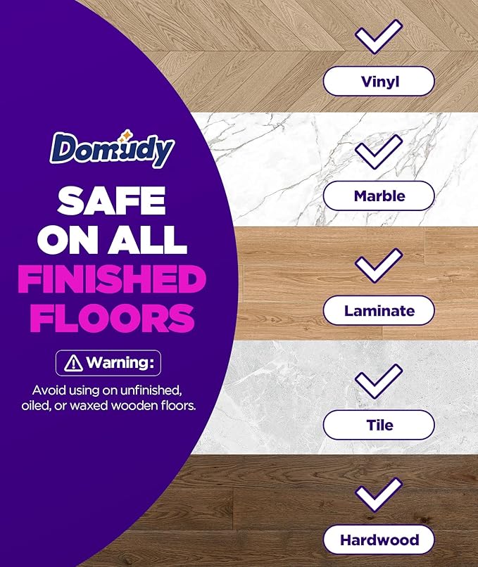 - 【Multi-Surface Safe, Streak-Free Clean】Worried about damaging your delicate floors? With Domudy, that's never a problem! Our mop refills are made with gentle materials, safe for all sealed floors including hardwood, vinyl, laminate, tile, marble, and stone. Mopping pads refills provide the right cleaning power, maintaining your floor's shine while offering the perfect care for any setting. Note: Not recommended for unfinished, oiled, or waxed wood, unsealed tiles, or carpeted surfaces.
