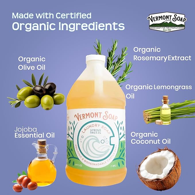 Vermont Soap Laundry Detergent, Laundry Soap, Natural Laundry Detergent Liquid, Baby Detergent, washing — Spring Breeze, 64 Fl Oz