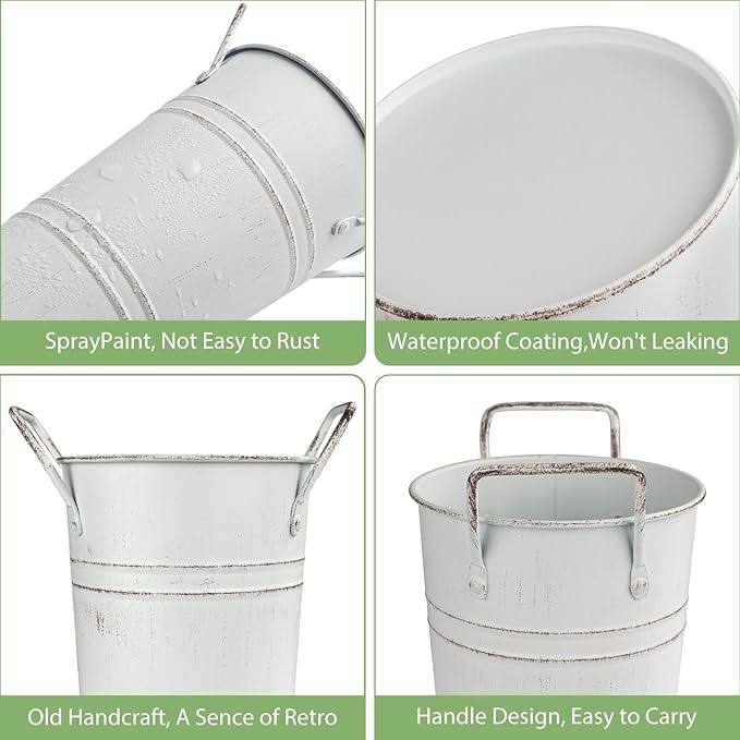 - 【WATERPROOF & LEAKPROOF METAL】 The flower buckets are made of thickened and high-quality metal with a galvanized coating on the surface to prevent rusting, and this galvanized bucket also has a waterproof coating inside, which is leakproof and durable, providing excellent durability and long service life.