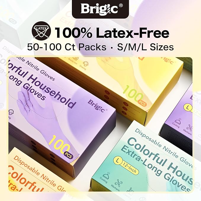 • Vibrant Color Options & Flexible Sizing: Available in Purple, Green, and Yellow for style or task differentiation. S/M/L sizes with stretchy nitrile offer a snug, ambidextrous fit for all hand types.