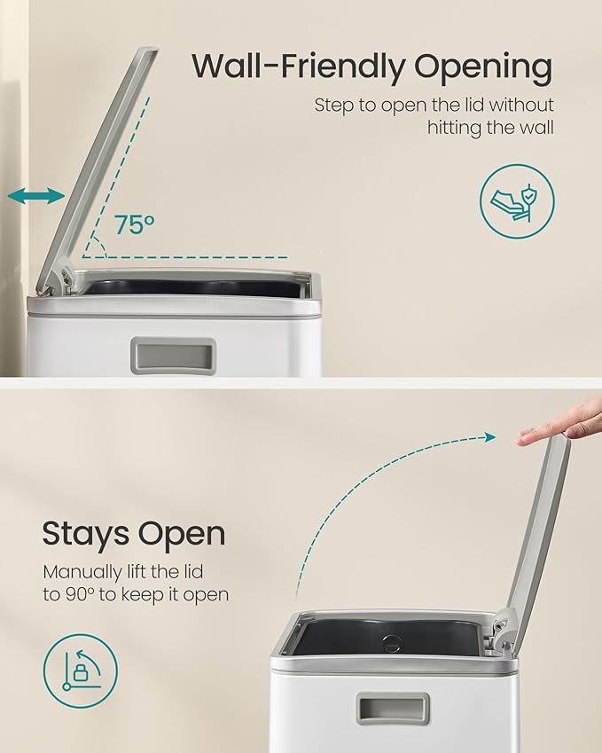 - Easy to Empty: The inner bucket, equipped with 2 side handles, simplifies emptying and cleaning, making the daily upkeep of your garbage can more convenient