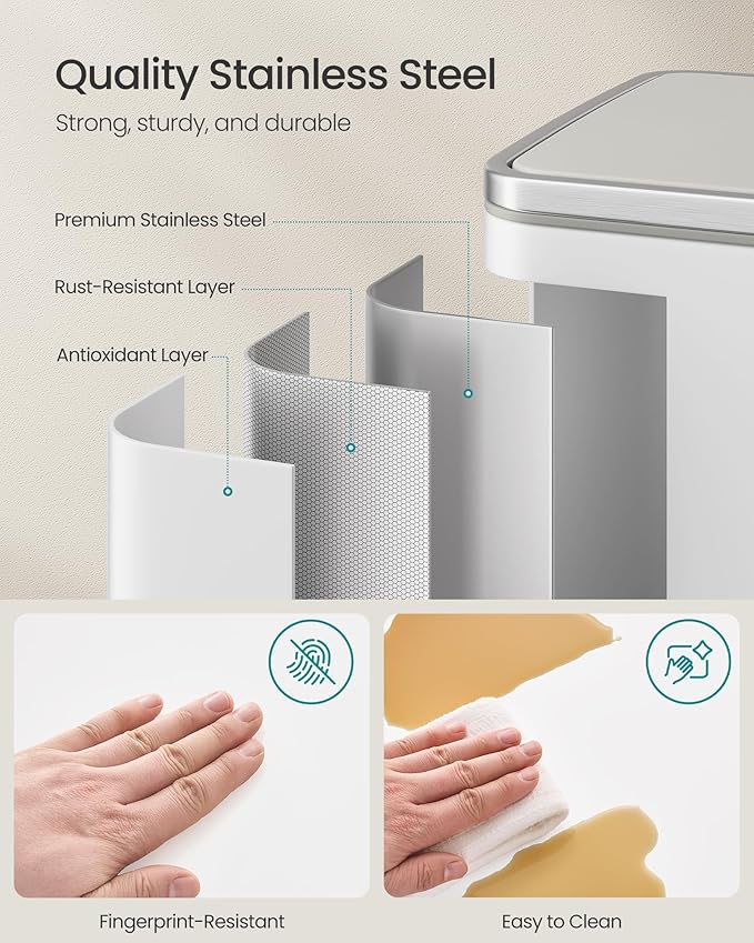 - Built to Last: Constructed from premium stainless steel, this trash can is resistant to both rust and fingerprints, ensuring its durability and long service life