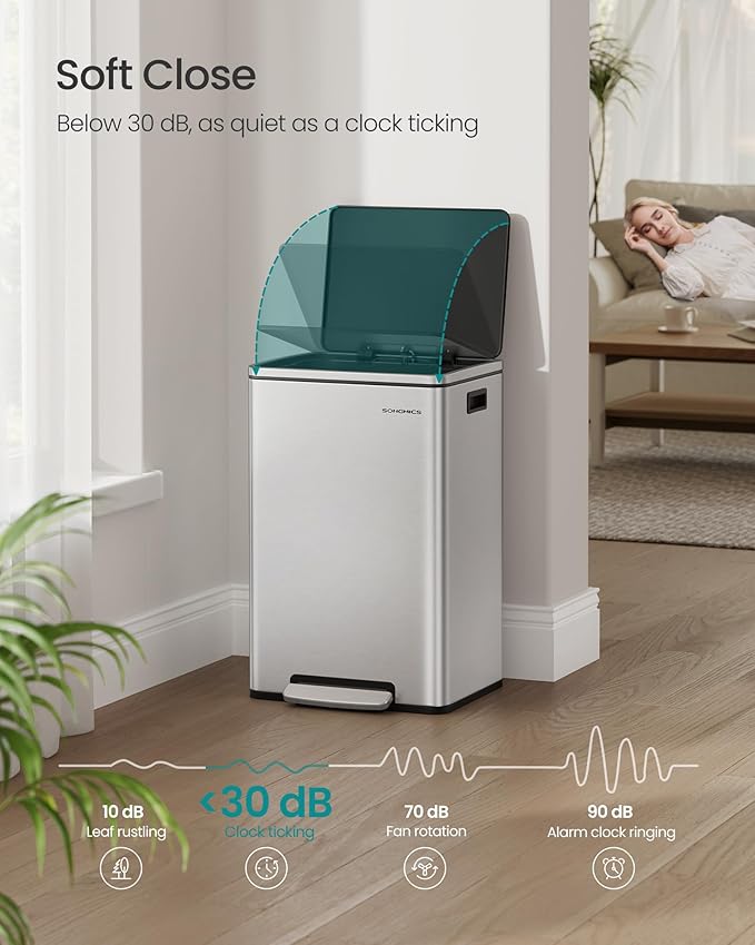 - Hands-Free & Noise-Free: The foot pedal offers a hands-free waste disposal solution, and the soft-close lid is designed to close both slowly and quietly, eliminating any loud noises