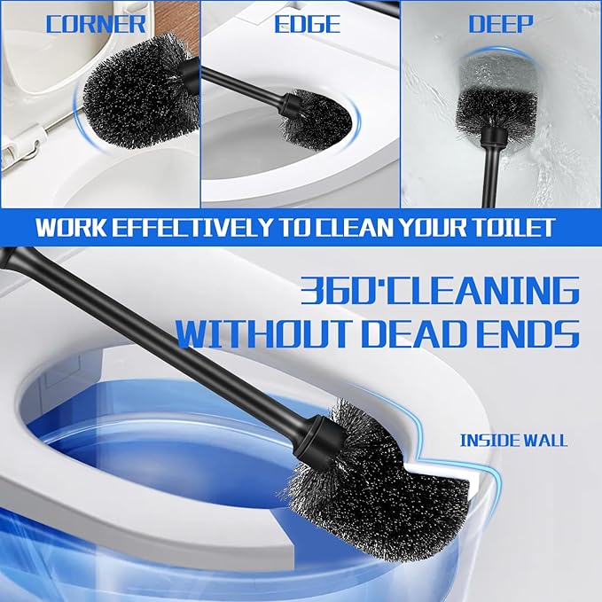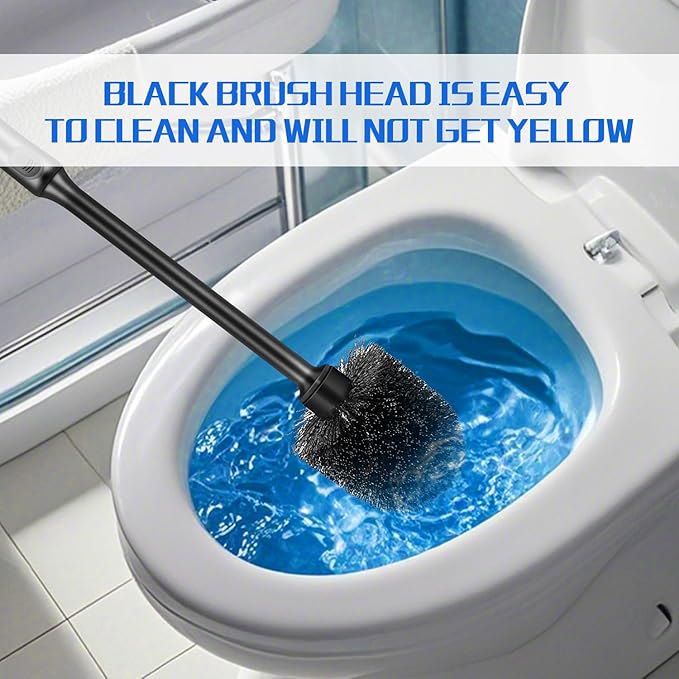 - [Deep Cleaning] The toilet cleaner brush features dense black bristles that are durable and tough on dirt—powerful enough to deliver a full deep clean of the entire bowl, yet gentle enough to avoid scratching the toilet surface.