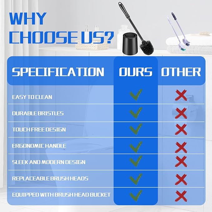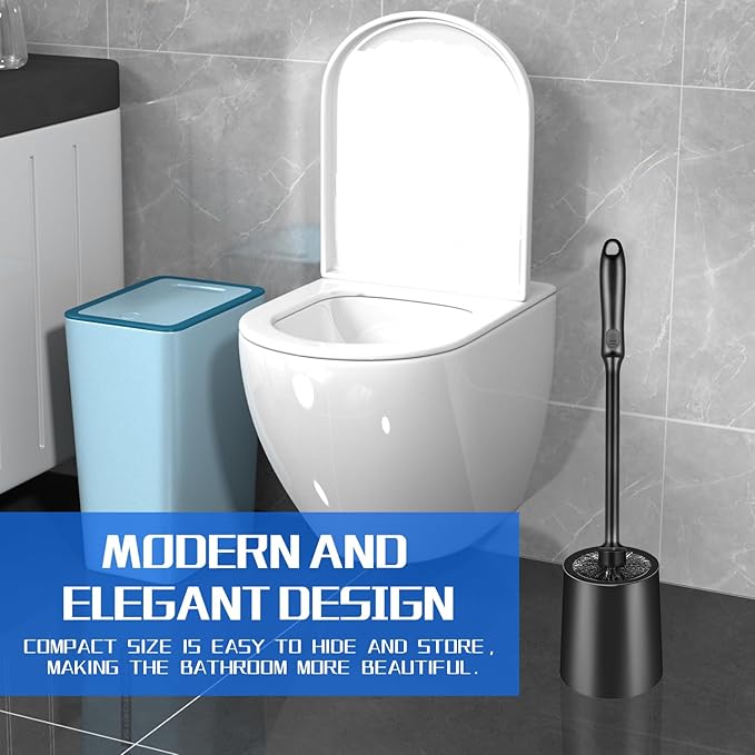 - [Modern Decorative Design] Stylish design can blends nicely with bathroom decor, and toilet bowl scrubber is crafted from thick, durable plastic, which will not cause annoying rusting problems.