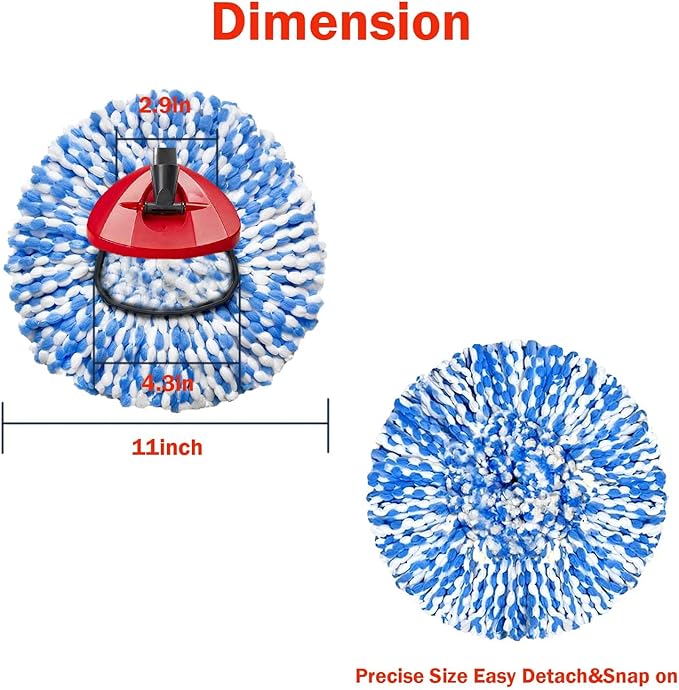 - EASY TO INSTALL: With a simple snap-fit installation,the dimensions are 2.9" in diameter and 4.3" in diameter on the outer triangular side,our special design gives you more stability when installing and cleaning,please note that the mop head is not compatible with the 1 can mop system,Fits perfectly with 2-tank system.