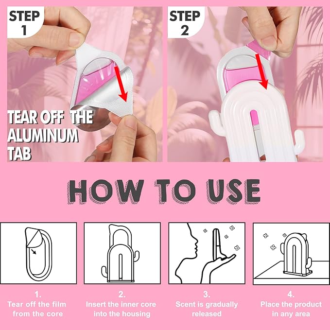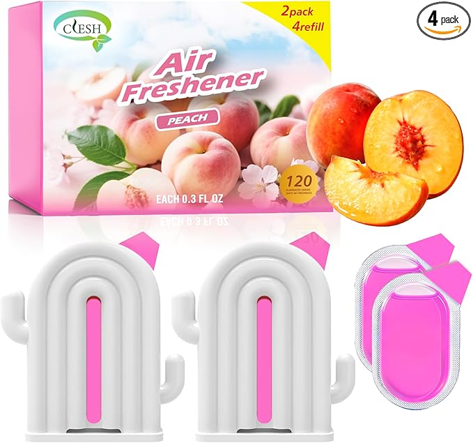Air Freshener for Home, 2 Pack, 2 Refill, Peach Scent, Odor Eliminator, Up to 120 Days, Cactus-shaped Freshener for Closet Bathroom, Cute Home Decor, White
