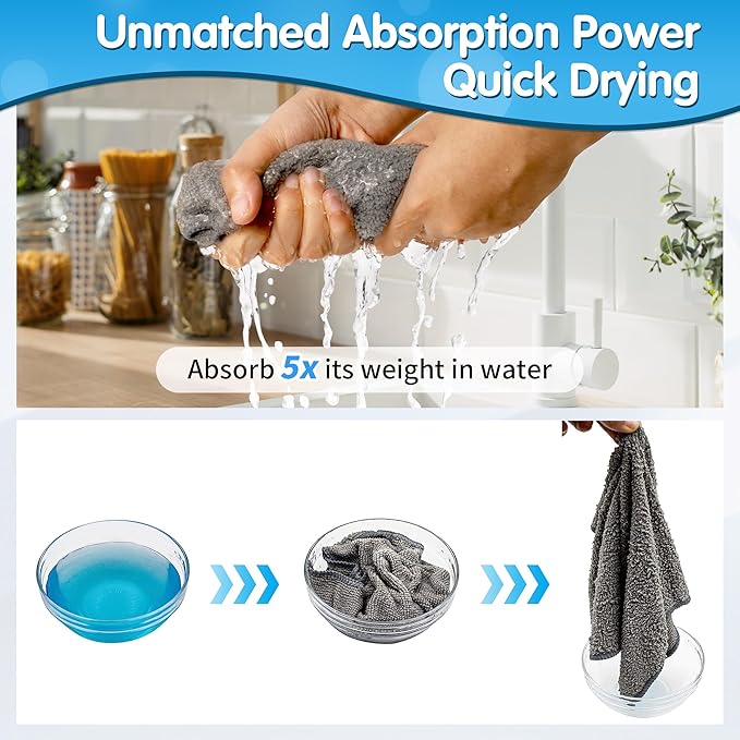 - Powerful cleaning performance: These premium microfiber towels are not only perfect for dishwashing, but also effortlessly remove grease and particles from microwaves, plates, pots, and pans. Moreover, they work wonders as dusters, effortlessly removing fingerprints and dirt from silverware and glassware, leaving your home spotless.
