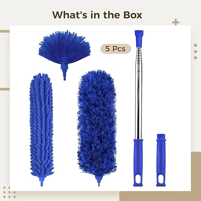 Homaisson 5 Piece Telescopic Duster Set with Extension Pole Microfiber Cleaning Heads for Ceiling Fans, Windows, and Hard-to-Reach Areas, Detachable, Quality and Easy to Clean