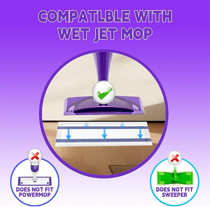 - [Durable & User-Friendly Design] Perfectly sized for wet jet spray mops, these refills stay securely in place without slipping off during use. The microfiber material is designed for long-lasting durability—one pad can efficiently clean an entire room. Easy to install and remove, they simplify the cleaning process for hassle-free use.