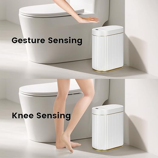 - Elegant Butterfly Lid: Unique dual-wing lid design opens smoothly and quietly when sensing motion—no loud slams or messy fingerprints. Delicate Bathroom Trash Can Motion Sensor Butterfly Lid.