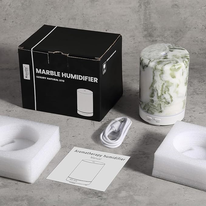 Koville 110ML Marble Essential Oil Diffuser - Ultrasonic Aromatherapy & Humidifier with 2-Color LED Lights, Decorative Marble Aromatherapy Diffuser, Auto Shut-Off, Scent for Home, Office, Yoga, Spa