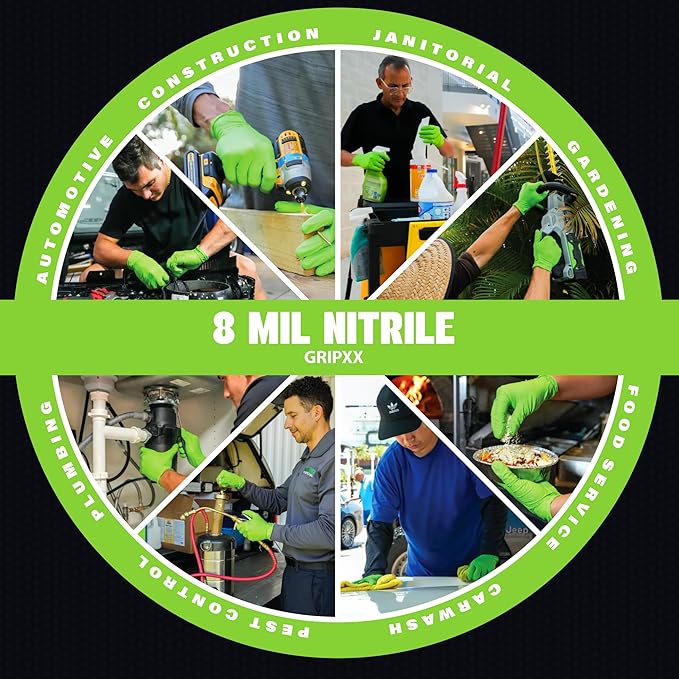- 🟠 HIGH-VISIBILITY ADVANTAGE: Safety meets style in vibrant Green. Our bright 8-mil Green nitrile glove color offers unmatched visibility. Our protective gloves enhance your personal safety in various environments. The striking Green color is designed to stand out, ensuring that you're easily spotted in high-risk situations, low-light conditions, or busy work environments- It's not just a glove, it's a statement of your commitment to safety.