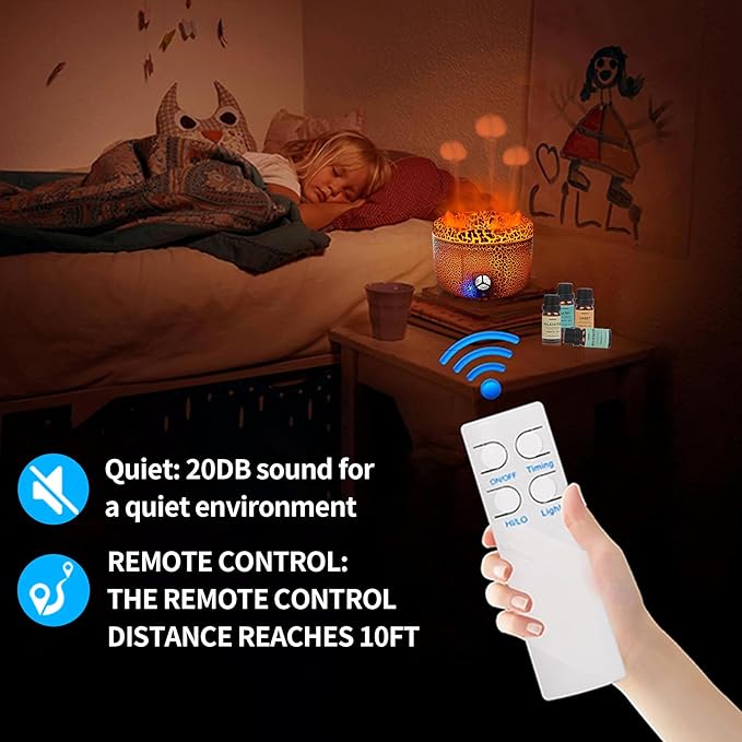 - 【2 Air mist 】There are two modes of air diffuser. The fog sprayed by flame humidifier burns in the air like a flame, Volcanic diffuser sprays 3 mist rings, like a volcanic eruption, allowing you to experience the atmosphere of a volcano at home You can choose your favorite mode at home, bedroom and office and enjoy the pleasant smell aroma diffuser.