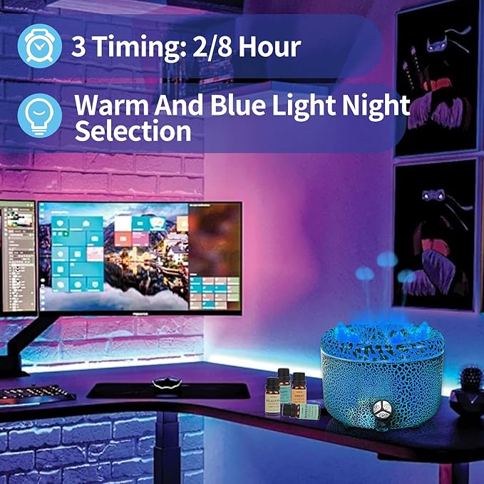 - 【Protection】flame diffuser will automatically turn off when there is no water, so as to avoid the damage of the oil diffuser and bring you a safe use experience. For home, bedroom, kitchen, bathroom, living room and big room, so that the fragrance can fill the whole home.
