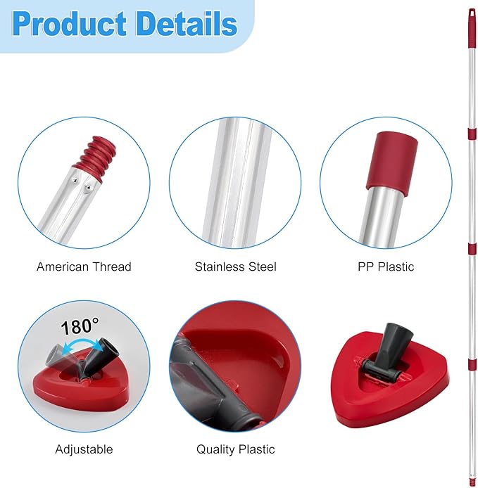 - Easy to install: 4-Section Mop handle and base set is built for long-lasting performance, crafted from high-quality stainless steel and durable plastic. Its simple installation allows you to quickly set up and get to work, making your cleaning routine more efficient and hassle-free.