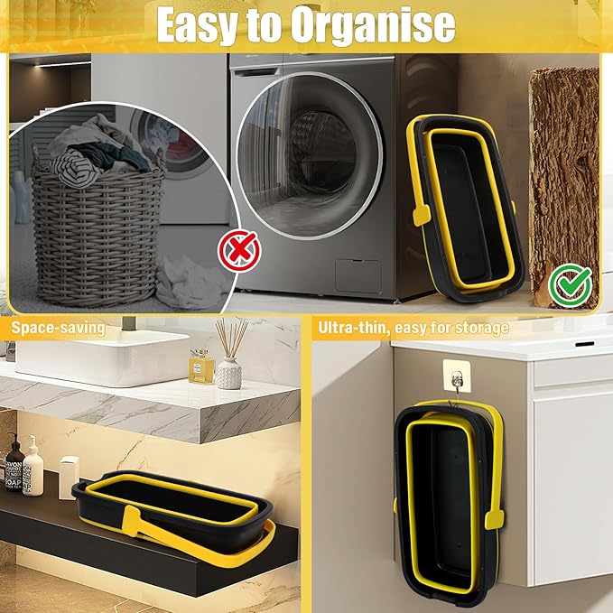 - ✔Professional Collapsible Cleaning Bucket:Foldable bucket is comes in a rectangular shape, that is great for your around-the-house cleaning tasks such as mopping and washing windows, And tools up to 15-inches long. The mopbucket is also a nice size and a good helper for organizing, decluttering, or storing items in your home