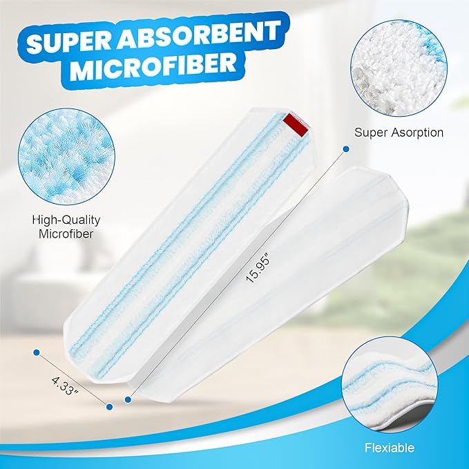 - 【Super Absorbent Microfiber】:Crafted from high-quality microfiber, the mop refill delivers super water absorption and powerful stain removal. Easy to traps dirt, dust and grime for a deep cleaning.