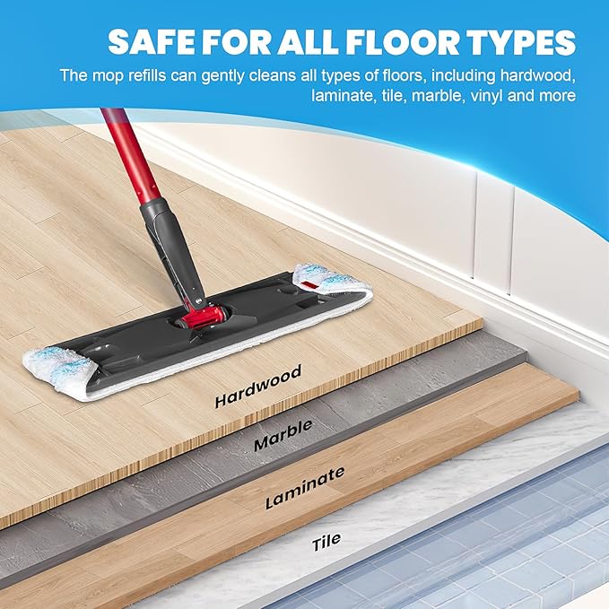 - 【Safe for All Floor Types】: The mop refills can gently cleans all types of floors, including hardwood, laminate, tile, marble, vinyl and more.The microfiber material ensures deep cleaning without damaging the floor or leaving any scratch.
