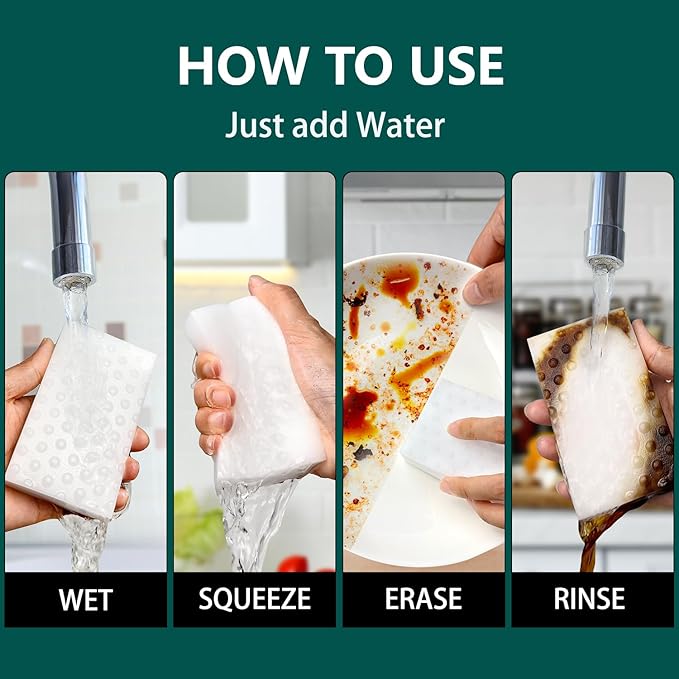 - No Harsh Chemicals Needed: The kitchen sponge cleaning supplies work without the need for harsh chemicals, just add water, and no more dealing with chemical fumes or worrying about damaging surfaces – it's an efficient and more eco-friendly cleaning tool