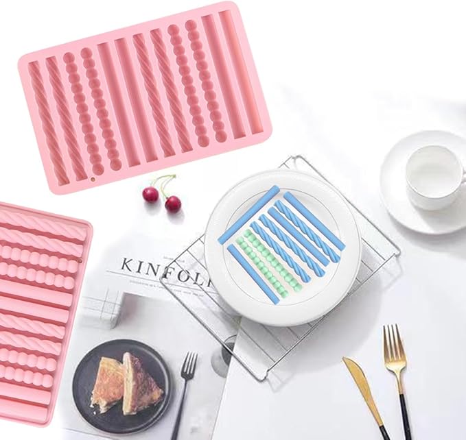 2Pcs oat bar mold - 12 long biscuit molds- Chocolate silicone mold for baking candies/energy bars, cheesecake, dried fruit cereal cookies (2, Pink)