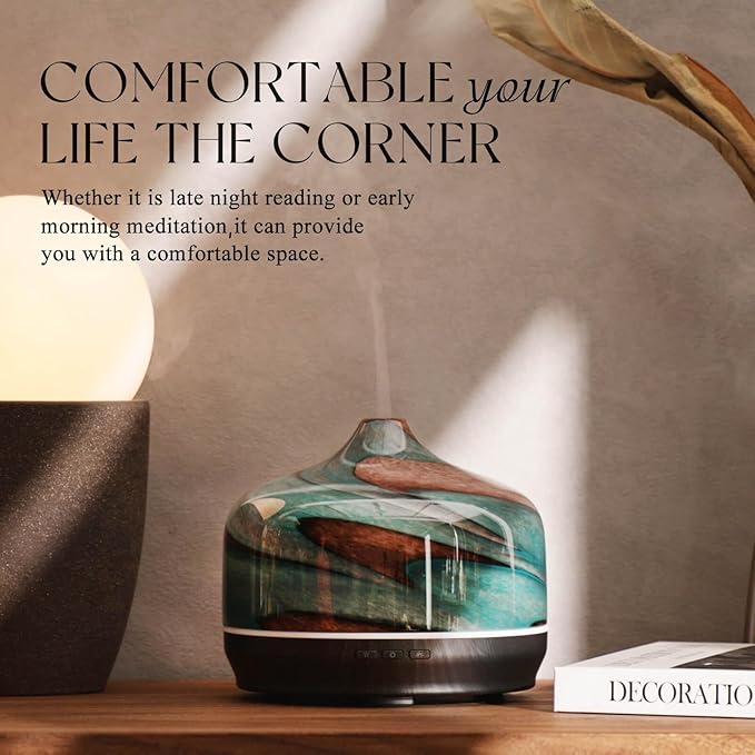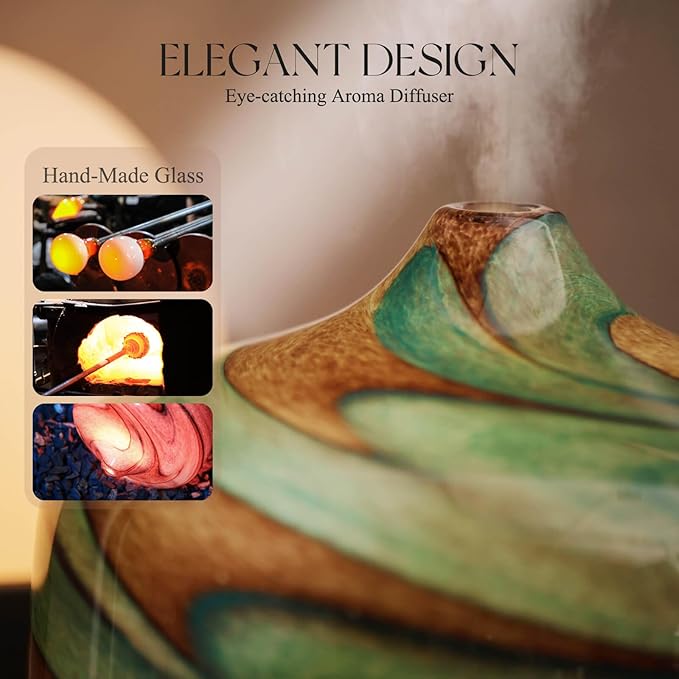 - UNIQUE ART DECOR - 500ml glass essential oil diffuser with star-shaped glass cover & wood grain base. Adds artistic harmony to your living space, perfect for bedrooms, living rooms, kids' rooms, studies, offices, & yoga studios. Enhances ambience