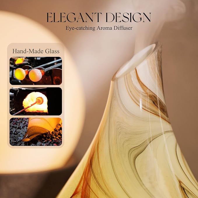 - UNIQUE ART DECOR - 280ml glass essential oil diffuser with star-shaped glass cover & wood grain base. Adds artistic harmony to your living space, perfect for bedrooms, living rooms, kids' rooms, studies, offices, & yoga studios. Enhances ambience