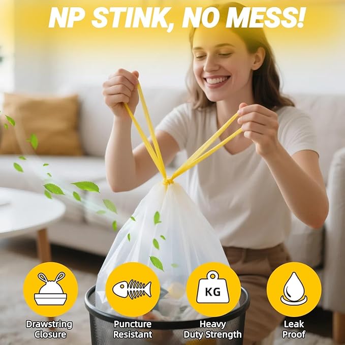- Premium Packaging: Thoughtfully packaged in a resealable boutique pouch, these small garbage bags remain clean, organized, and easy to store, making them perfect for kitchen drawers or bathroom cabinets.