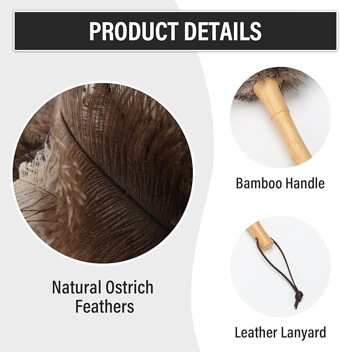 - FLUFFY FEATHERS: Each ostrich feather has thousands of soft, tiny feathers that help the duster clean ash more effectively. Our duster feathers are fluffy and soft. Therefore, you can rest assured that you can use our chicken feather duster to clean up fragile items or small items that are easy to tip over