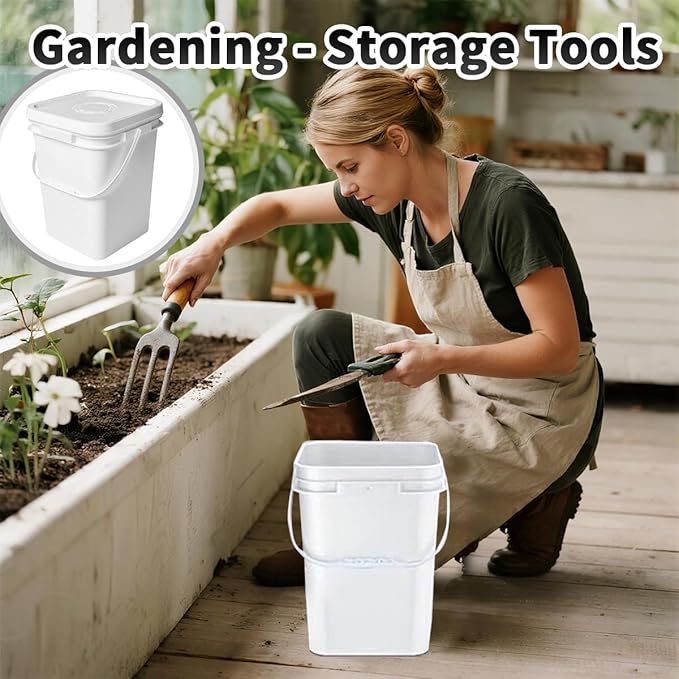 - Wide Range of Uses: This 5 Gallon Square Bucket with Lid is versatile, with a 5-gallon capacity suitable for storing food such as beans; or other supplies such as kitty litter, paint, gardening tools and liquids. Indoors or outdoors, garden storage or anywhere else, this black square bucket will meet your needs.