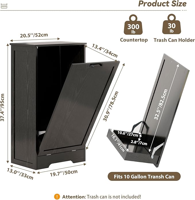 - High-Quality Cabinet Trash Can: Crafted from high-density MDF, this pull out trash can is incredibly sturdy, with a smooth, scratch-resistant surface that maintains its pristine appearance even with daily use. Reinforced corner joints and durable metal hinges enhance structural integrity, preventing warping or loosening over extended use. Every component is engineered to outlast standard storage units, merging resilience with refined design seamlessly.