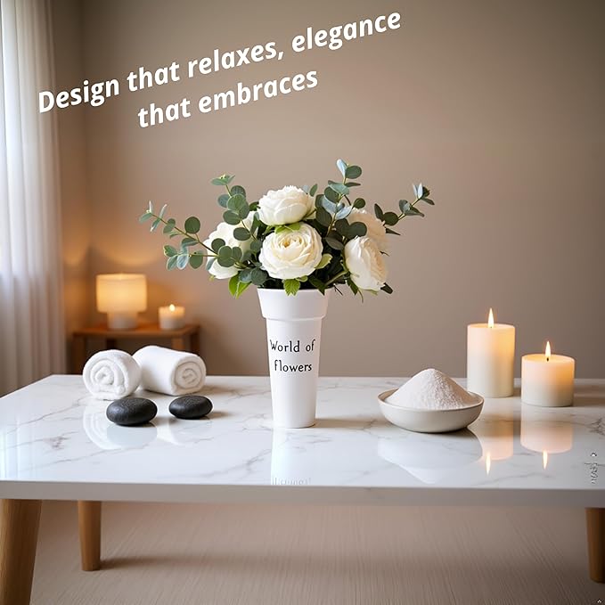 VITAGIR. Set of 6 Buckets for Cut Flowers in Plastic White Matte Color 14 Inch, Flower Buckets for Flower Bar Ideal for Displaying Flowers in Florist Shop or as Home.