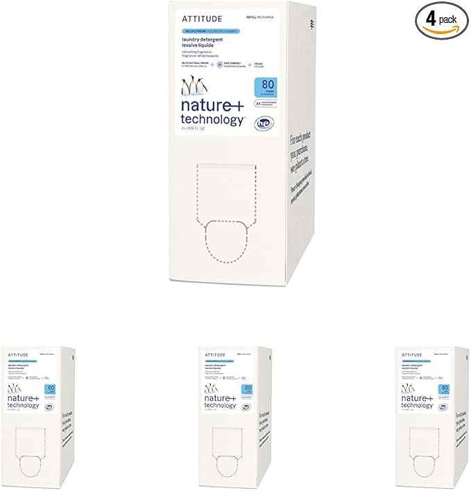 ATTITUDE Liquid Laundry Detergent Refill, EWG Verified, HE Compatible, Plant-Based & Vegan, Natural Laundry Soap, Wildflowers Scent, 80 Loads, 67.6 Fl Oz (Pack of 4)