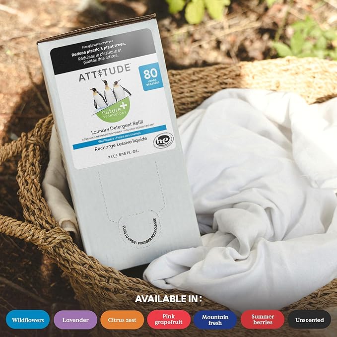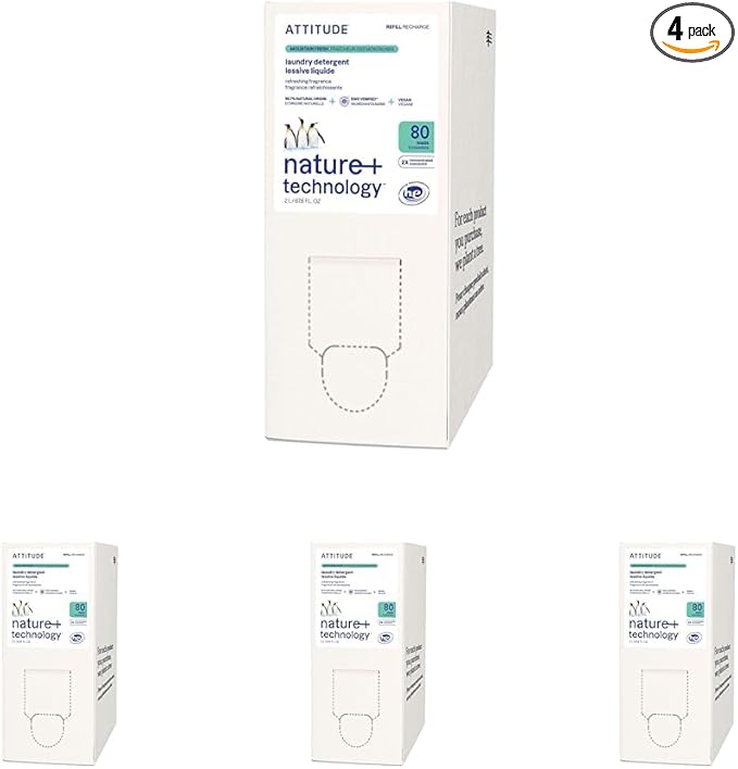 ATTITUDE Liquid Laundry Detergent Refill, EWG Verified, HE Compatible, Plant-Based & Vegan, Natural Laundry Soap, Mountain Fresh Scent, 80 Loads, 67.6 Fl Oz (Pack of 4)